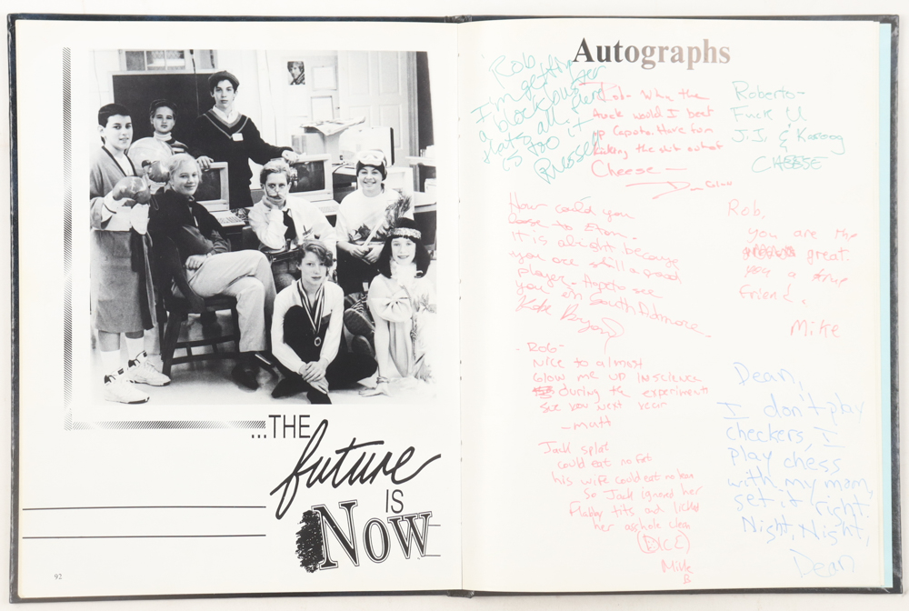 1992 Bala Cynwyd Middle School yearbook has been hand-signed on one of the autograph pages by Kobe Bryant (D.2020, Los Angeles Lakers, HOF). Please note, yearbook contain personal signatures and inscriptions.