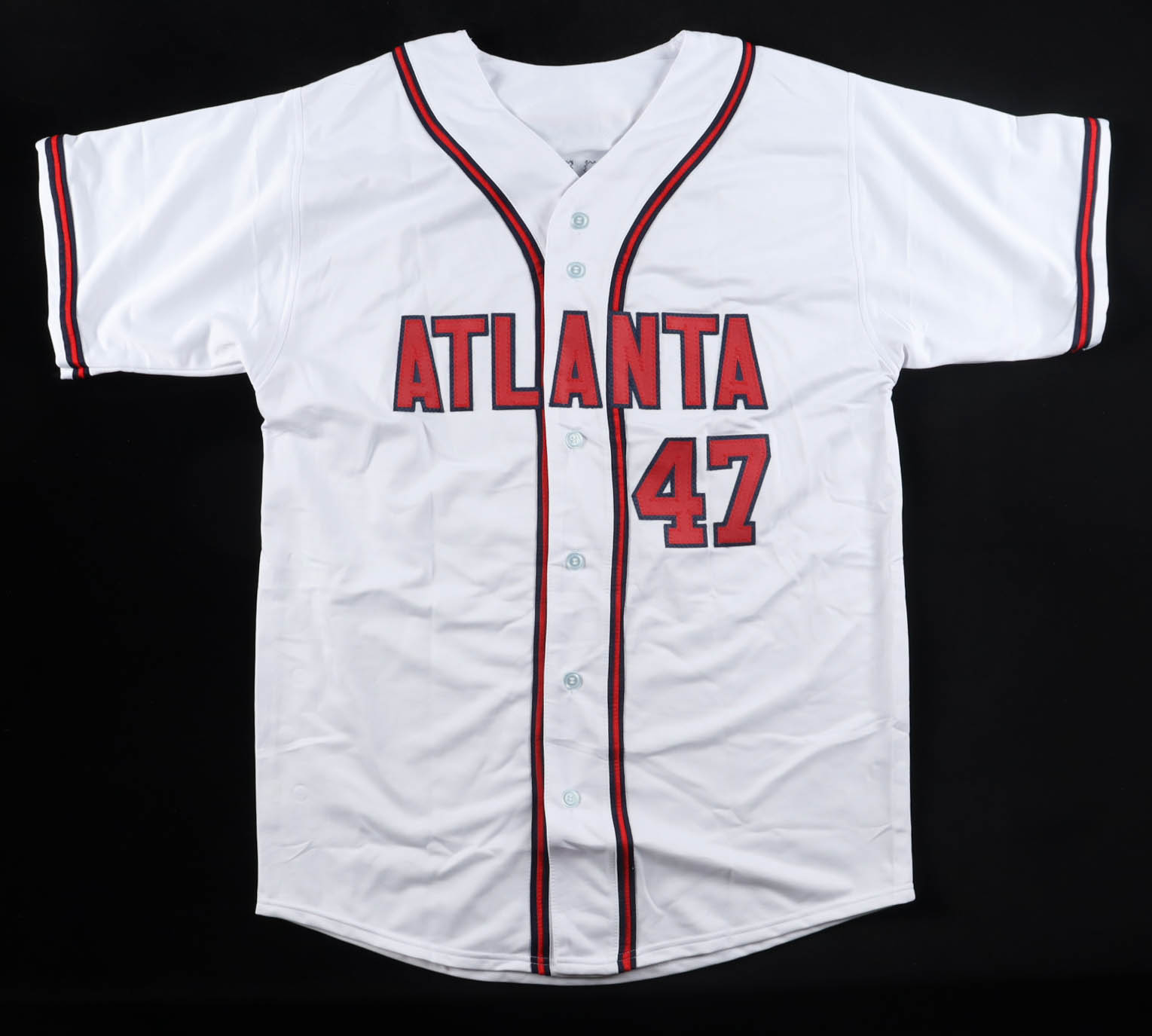Custom jersey with everything sewn on, size XL. Hand-signed by Tom Glavine (HOF).