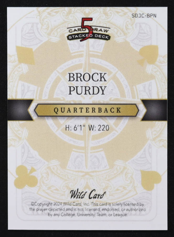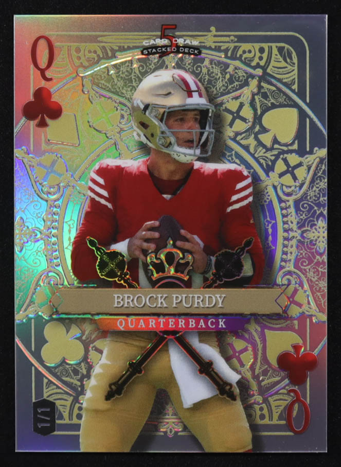 Brock Purdy 2024 Wild Card 5 Card Draw Stacked Deck Queen of Clubs Prismatic Silver #BPN #1/1