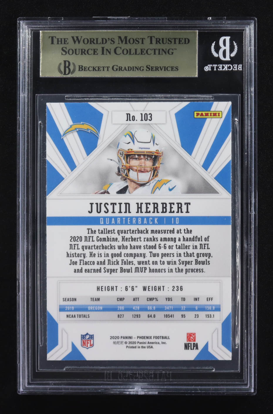 Justin Herbert 2020 Panini Phoenix Fire Burst #103 RC (BGS 9.5)