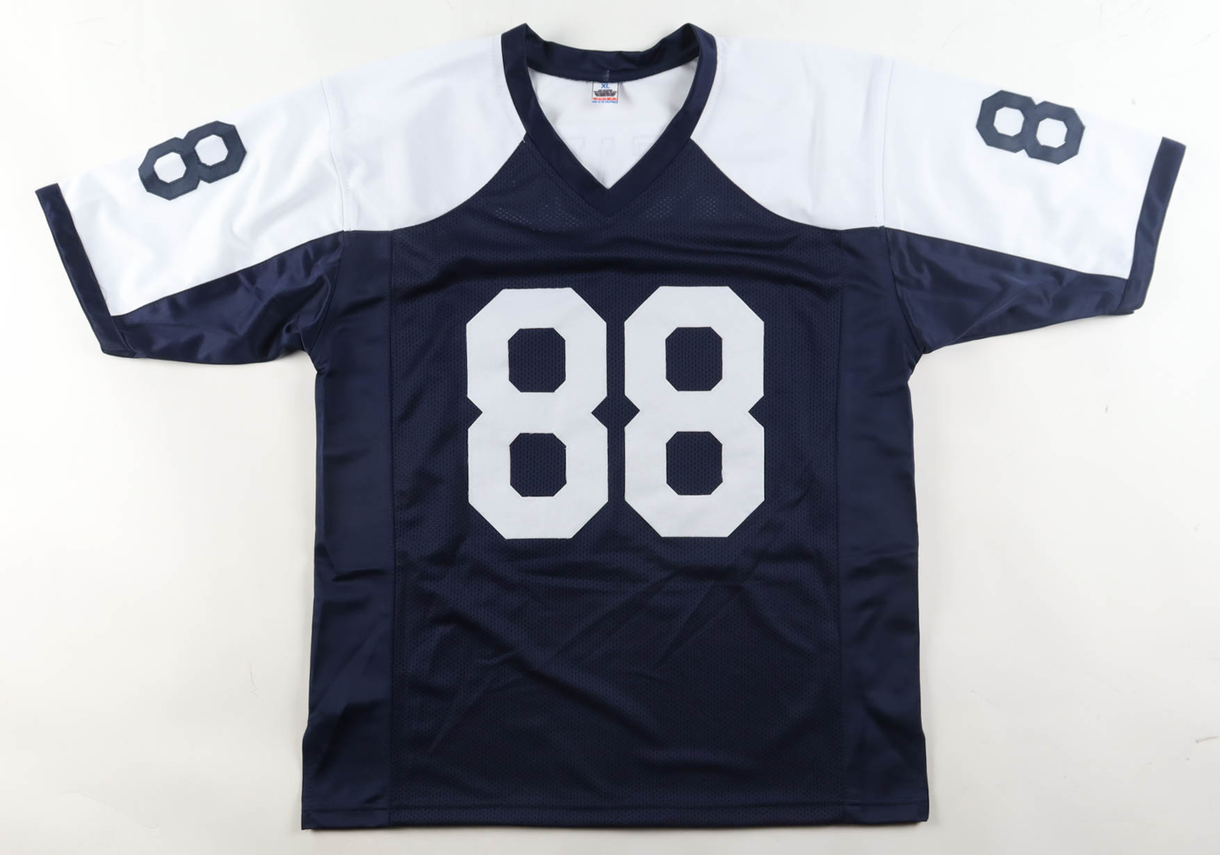 Custom jersey with everything sewn on, size XL. Hand-signed and inscribed by Drew Pearson (HOF).