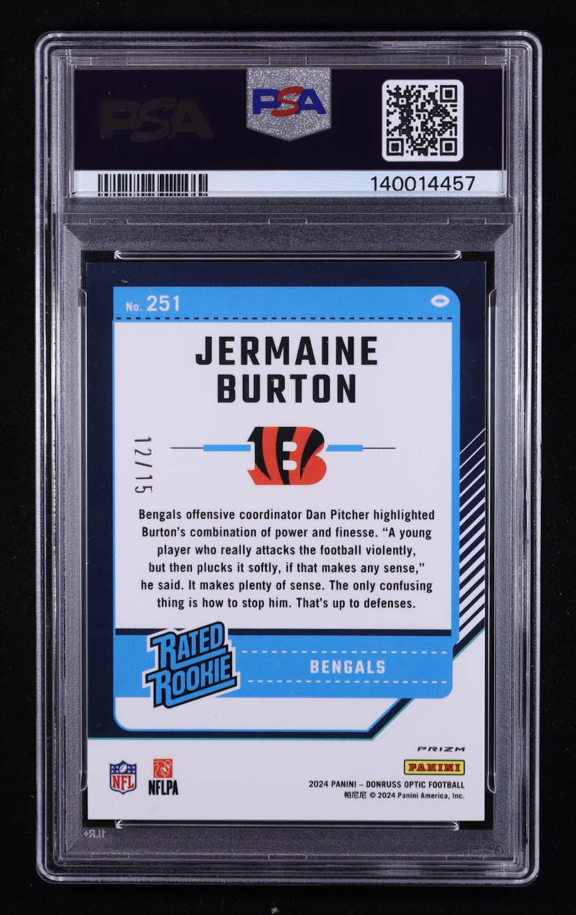 Jermaine Burton 2024 Donruss Optic Purple Stars #251 #12/15 RR RC (PSA 8)