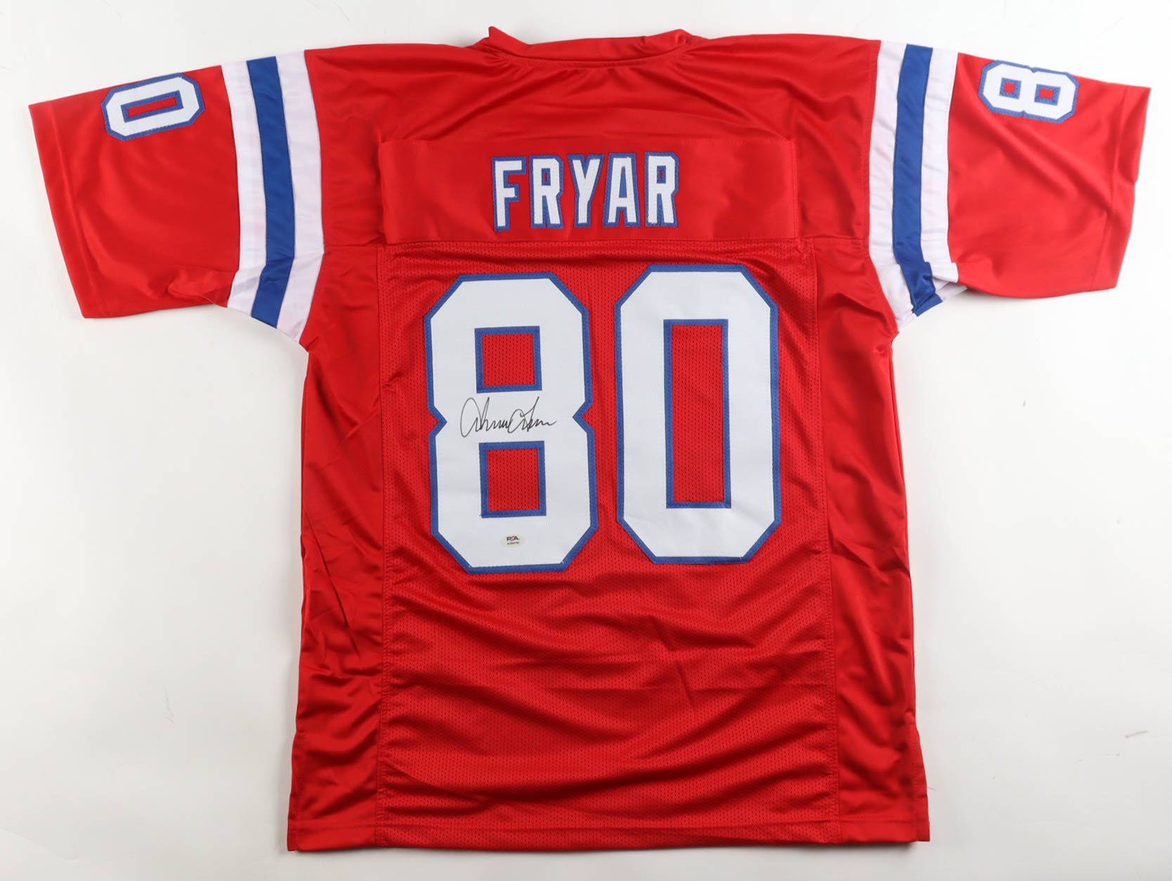 Custom jersey with everything sewn on, size XL. Hand-signed by Irving Fryar.