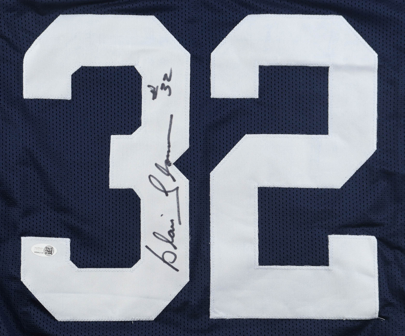Custom jersey with everything sewn on, size XL. Hand-signed by Blair Thomas. Please note, glue is visible through the reverse number. See photos regarding the condition of the item.