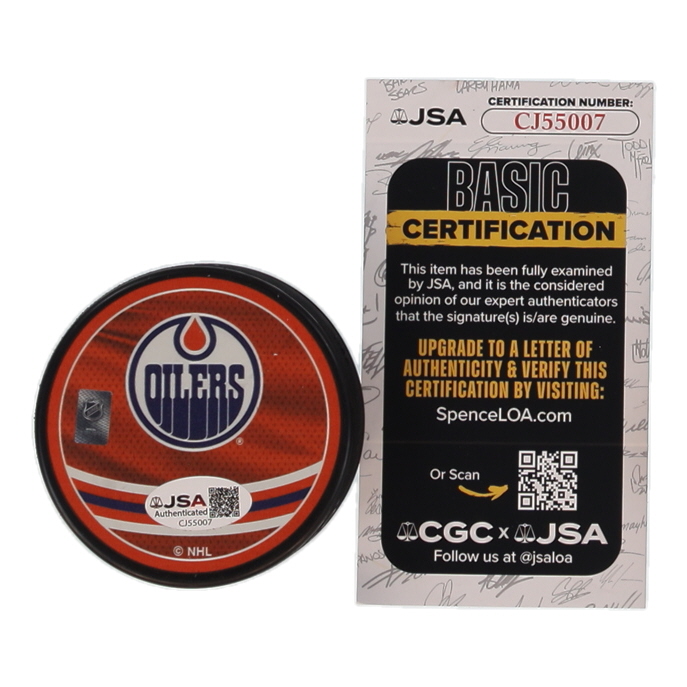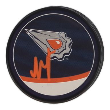 Edmonton Oilers logo hockey puck has been hand-signed by Matthew Savoie. Please see photos for more details regarding the item.