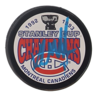 Montreal Candiens 1992-93 Stanley Cup Champions logo hockey puck has been hand-signed by Kirk Muller. Please see photos for more details regarding the item.
