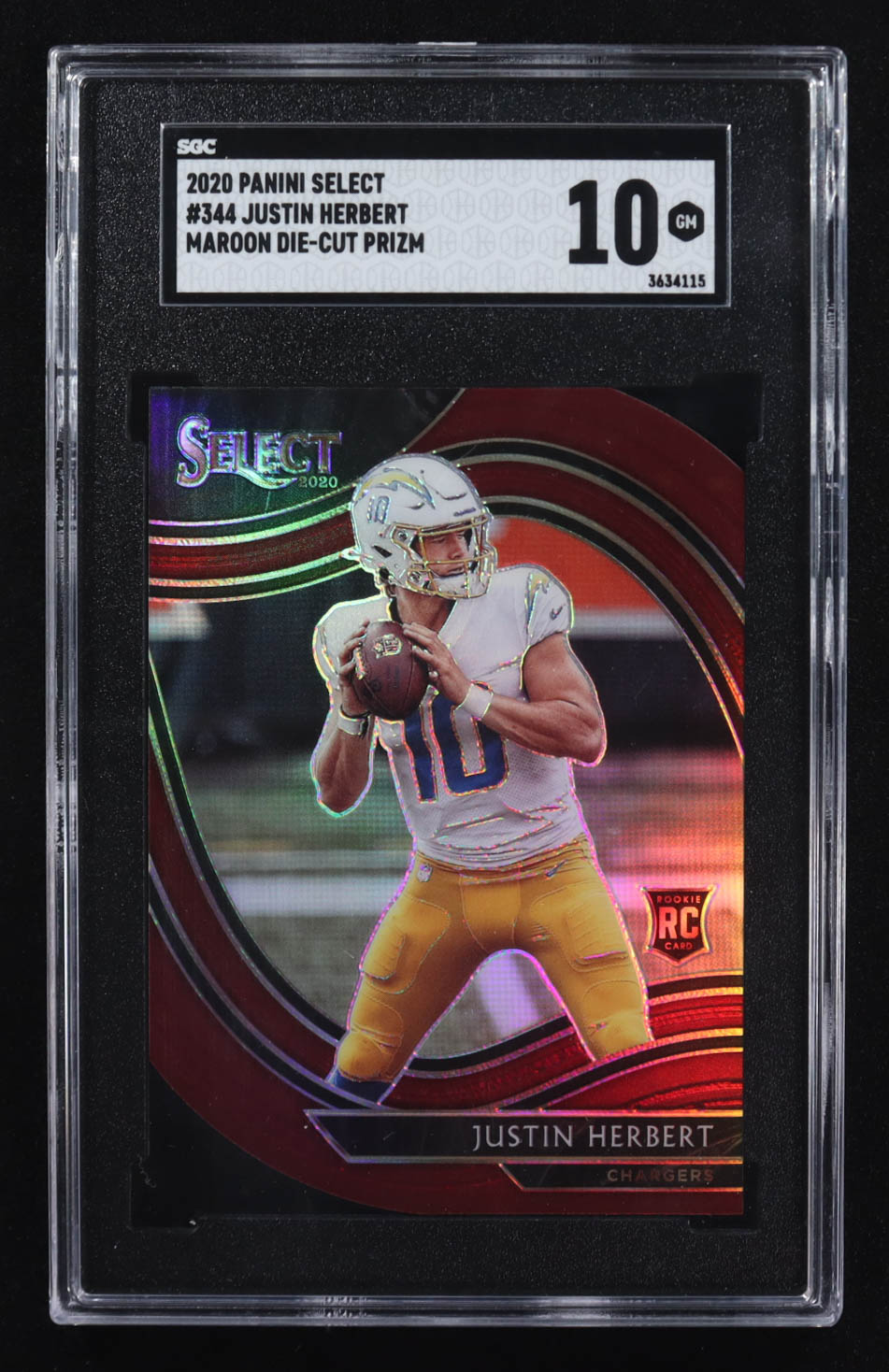 Justin Herbert 2020 Panini Select Maroon Die-Cut Prizm #344 RC (SGC 10)