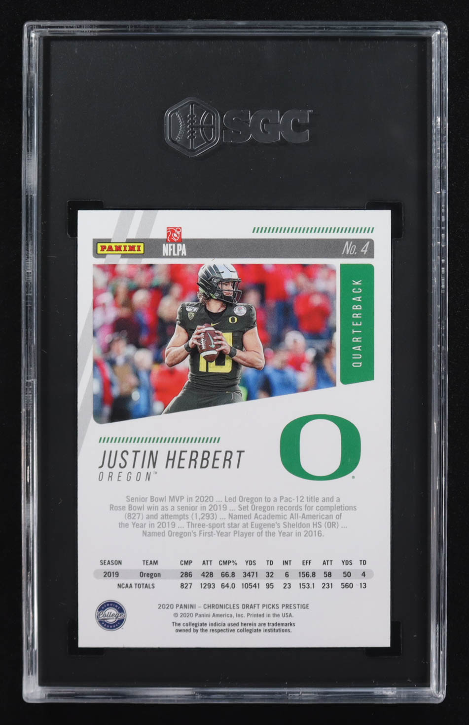 Justin Herbert 2020 Panini Chronicles Draft Picks Prestige #4 RC (SGC 9.5)