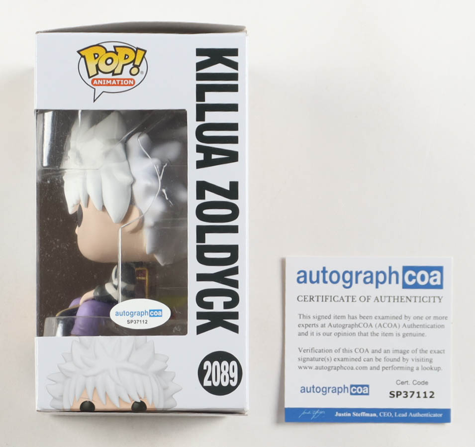 Funko Pop! vinyl figure measures approximately 4" in height and has been hand-signed on the packaging by Cristina Vee (Killua Zoldyck Voice Actor). Please note, the window has been swapped.