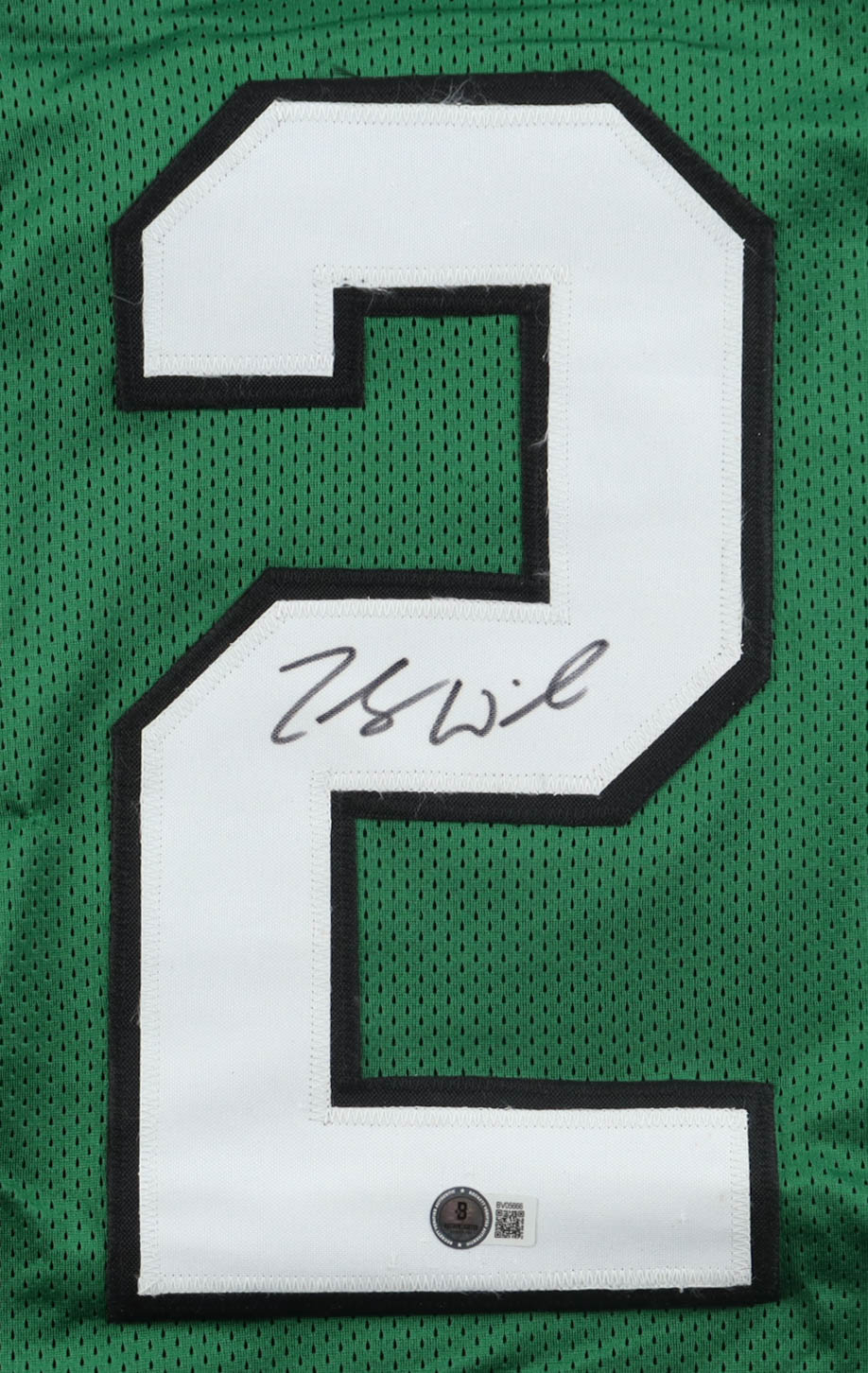 Custom jersey with everything sewn on, size XL. Hand-signed by Zach Wilson.