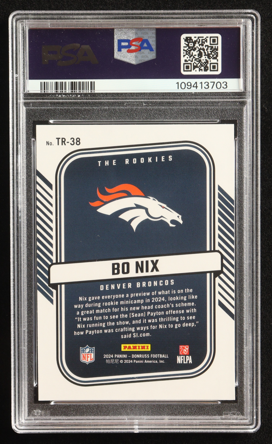 Bo Nix 2024 Donruss The Rookies #38 RC (PSA 9)
