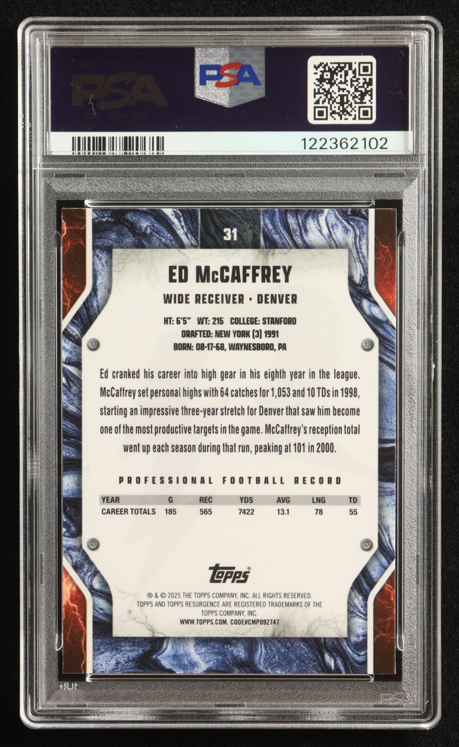Ed McCaffrey 2024 Topps Resurgence Blue and Orange Spark #31 (PSA 10)