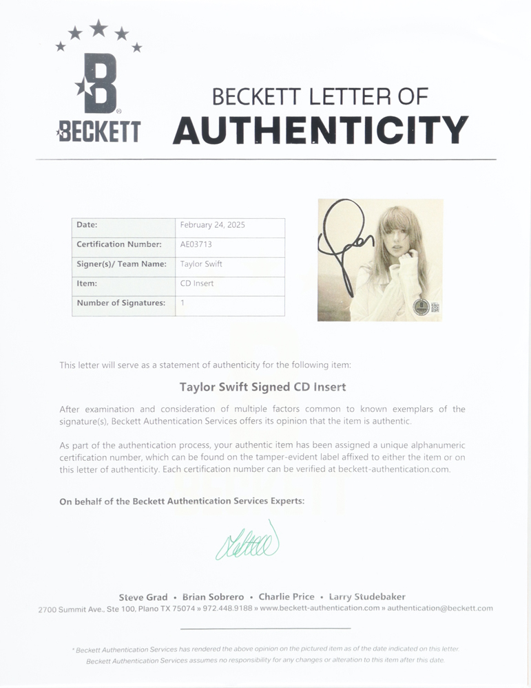 The autograph includes an official Beckett Authentication Services hologram and matching LOA for authenticity purposes.