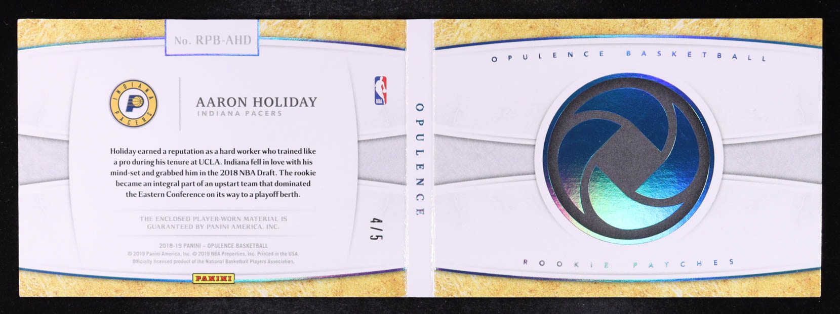 Aaron Holiday 2018-19 Panini Opulence Rookie Patches Booklet Brand Logo #12 #4/5 RC