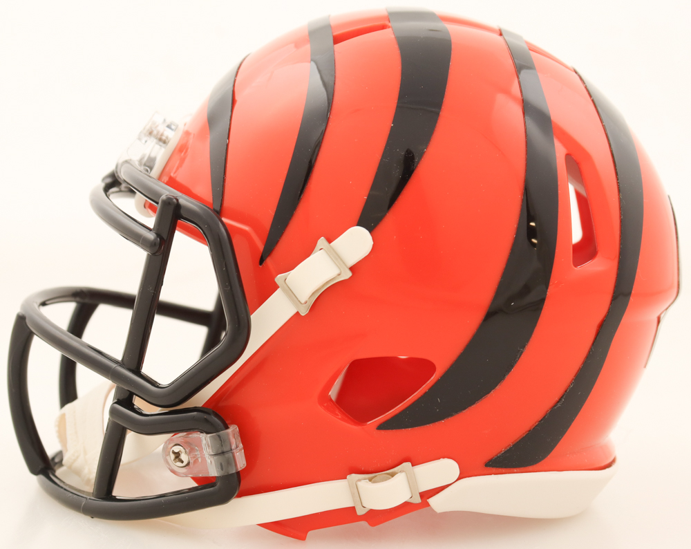 Riddell Cincinnati Bengals speed mini helmet. Has been hand-signed by Chad "Ochocinco" Johnson.