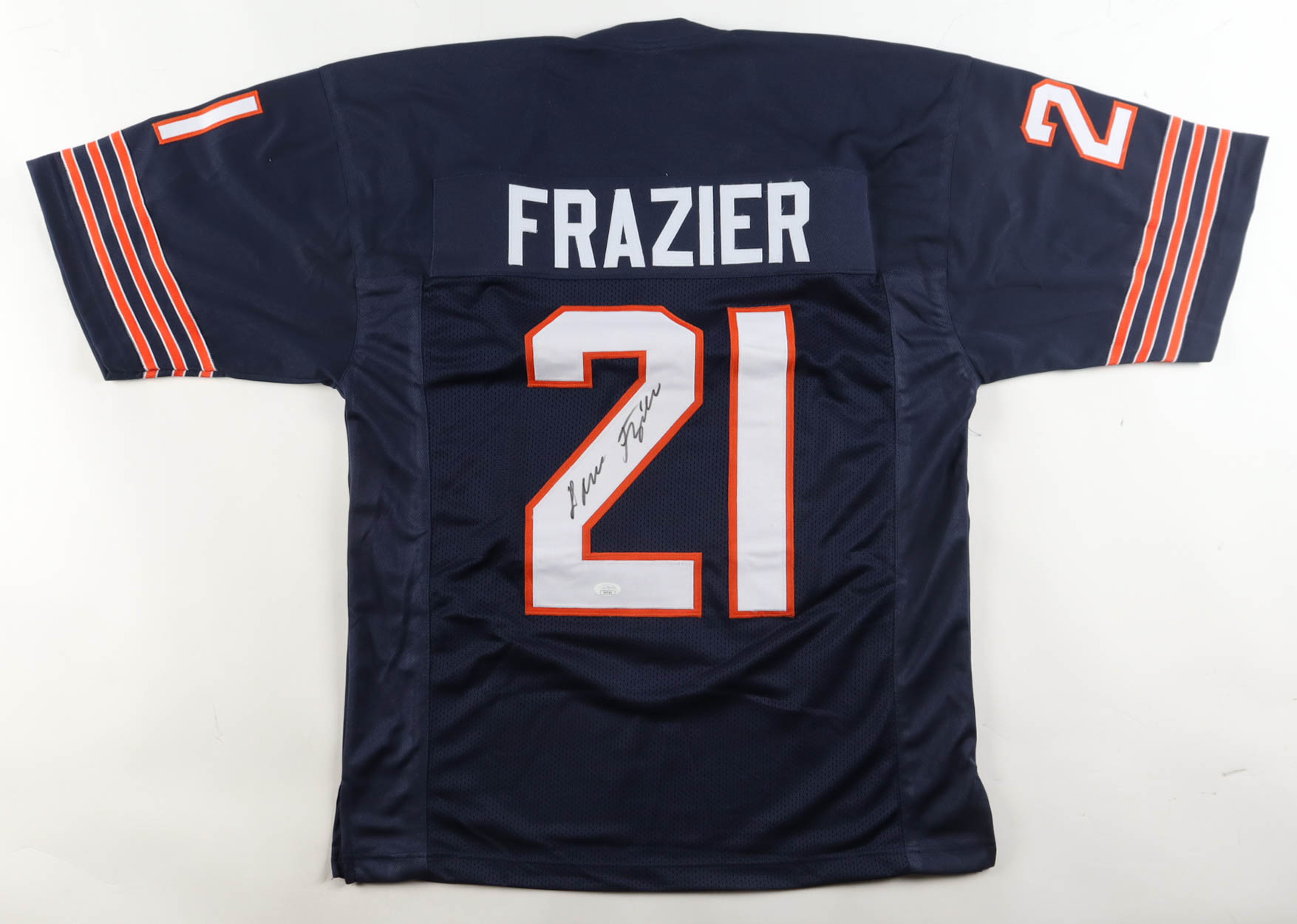 Custom jersey with everything sewn on, size XL. Hand-signed by Leslie Frazier. Please note, glue is visible through the reverse number.