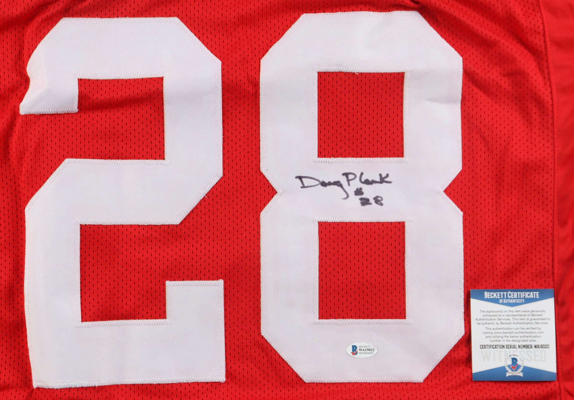 Custom jersey with everything sewn on, size XL. Hand-signed and inscribed by Doug Plank. Please note, glue is visible through the jersey numbers and the signature has bled.
