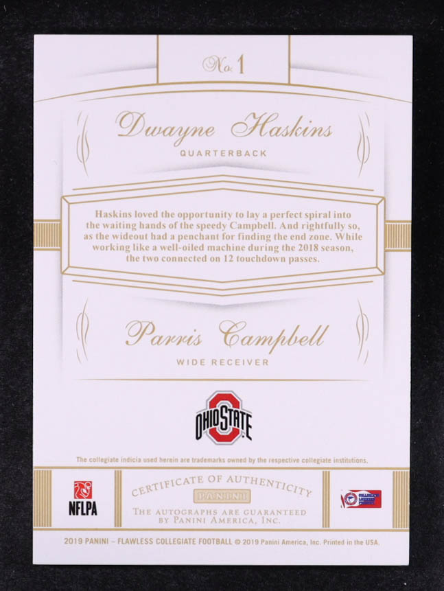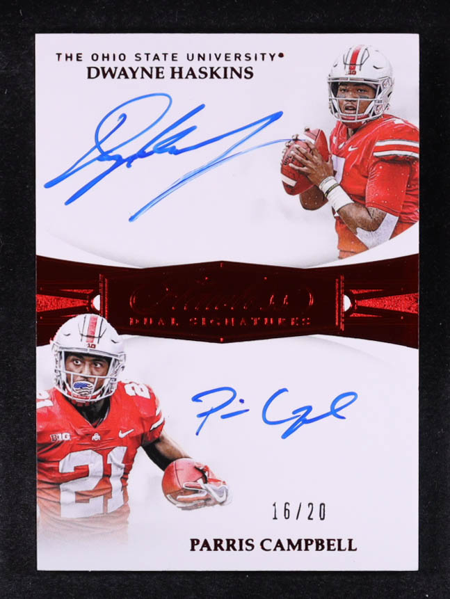 Dwayne Haskins / Parris Campbell 2019 Panini Flawless Collegiate Rookie Dual Signatures Ruby #1 #16/20 RC