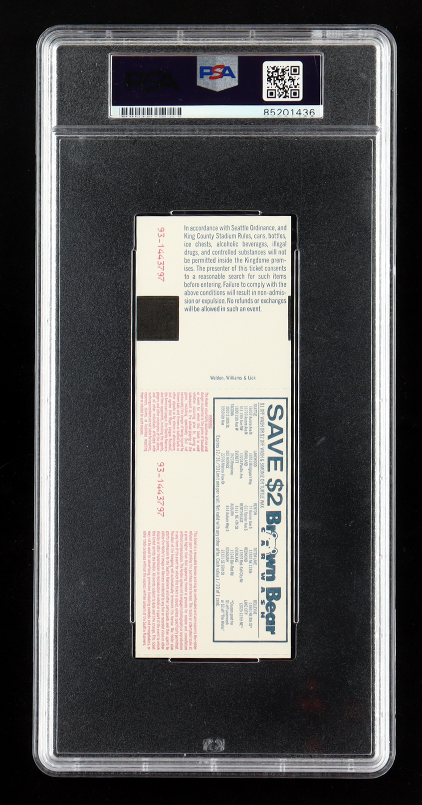 Nolan Ryan Signed 1993 Original Game Ticket (PSA Auto 10)