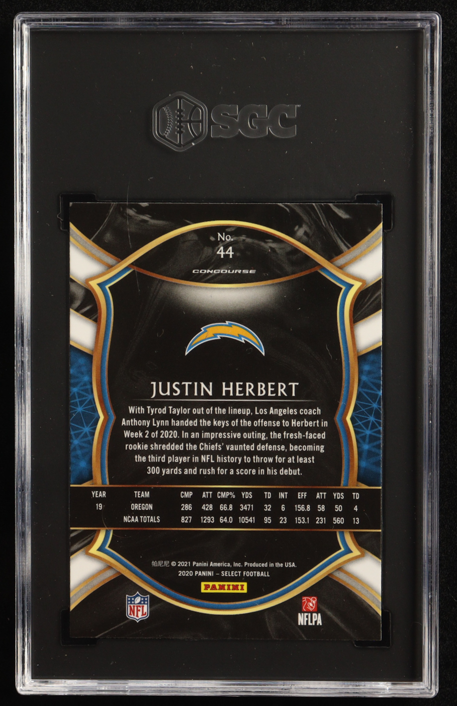 Justin Herbert 2020 Panini Select #44 RC (SGC 10)
