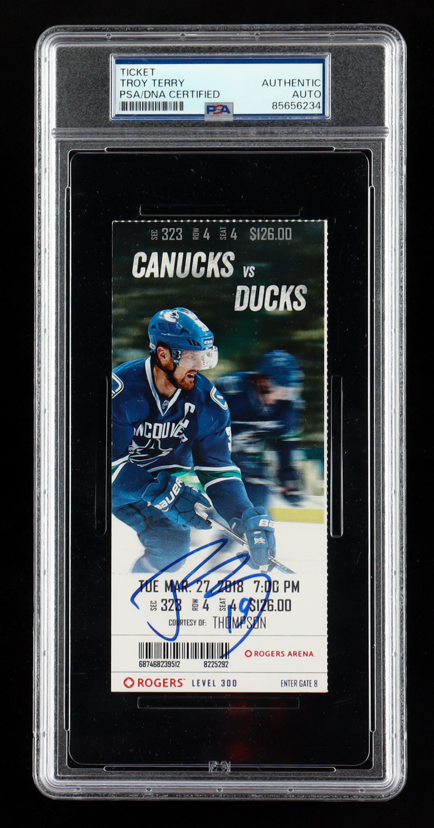 Troy Terry Signed 2018 Canucks vs Ducks Game Ticket (PSA)