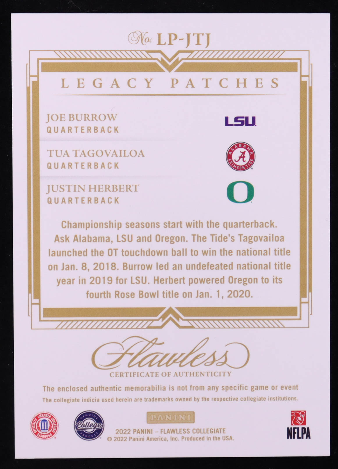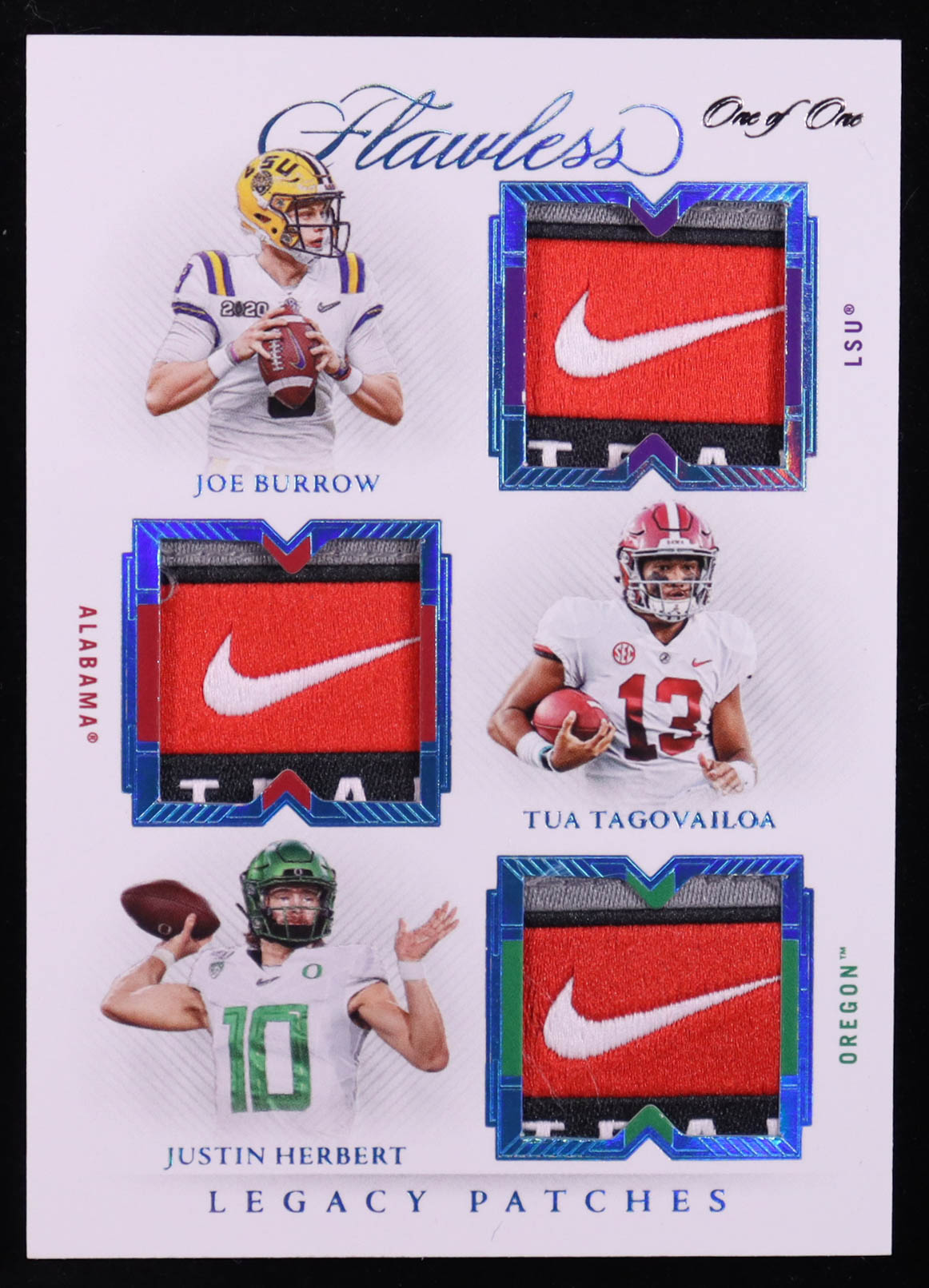 Tua Tagovailoa / Joe Burrow / Justin Herbert 2022 Panini Flawless Collegiate Legacy Patches Brand Logo #9 #1/1