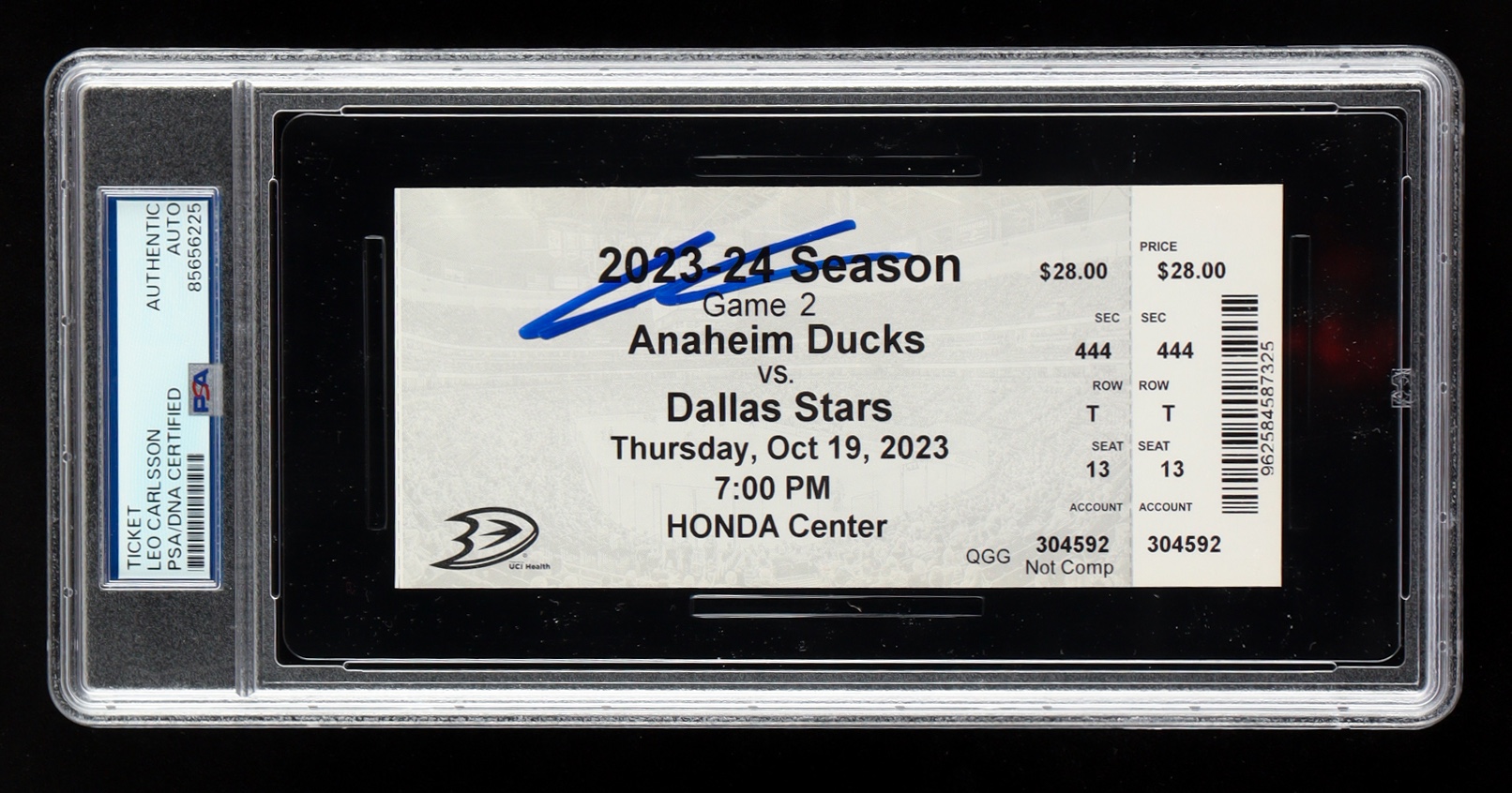 Leo Carlsson Signed 2023 Ducks vs Stars Game Ticket (PSA)