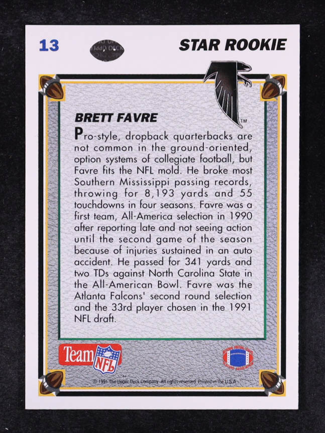 Brett Favre 1991 Upper Deck #13 RC