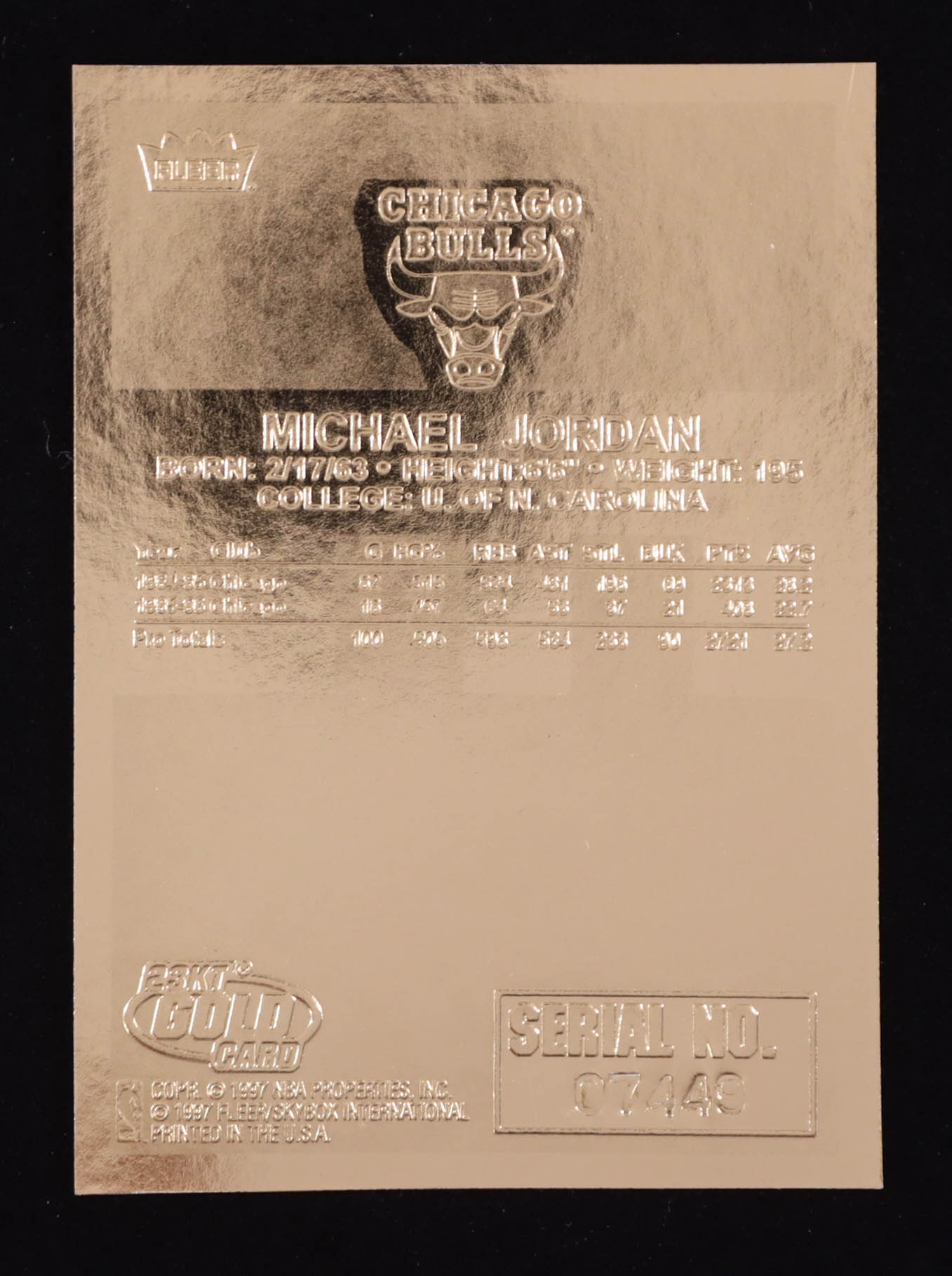Michael Jordan 1997 Fleer Premier Signature Series Holo Prism Refractor 23Kt Gold Card