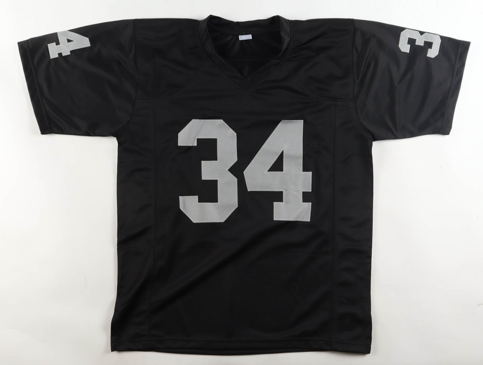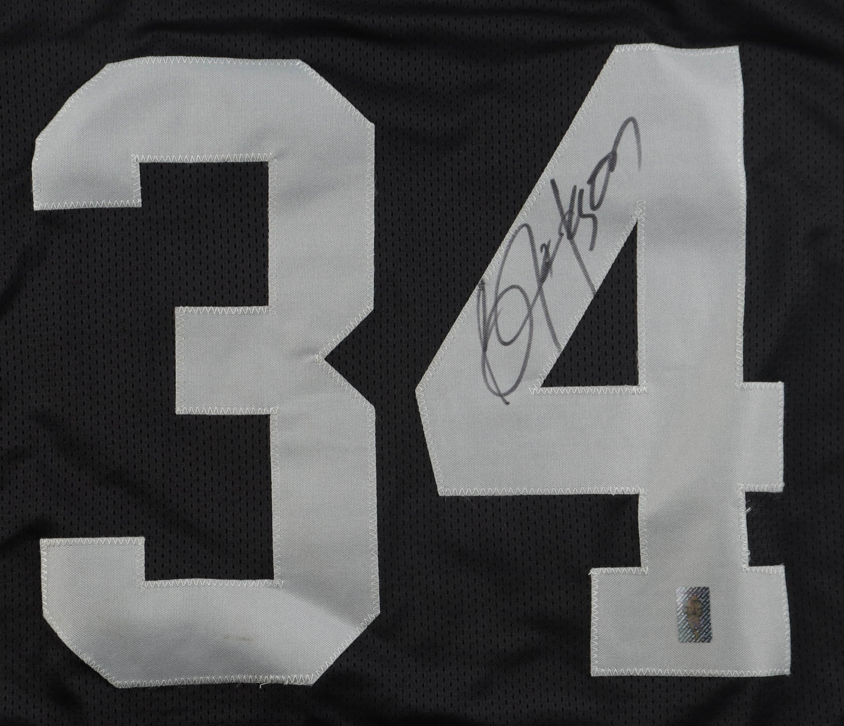 Custom jersey with everything sewn on, size XL. Hand-signed by Bo Jackson.