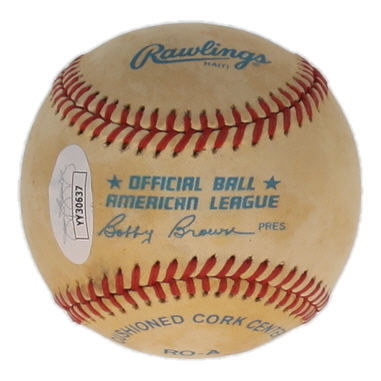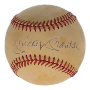 Rawlings Official American League baseball has been hand-signed by Mickey Mantle (D. 1995, New York Yankees, HOF). Please note, the baseball is stained and naturally toned.