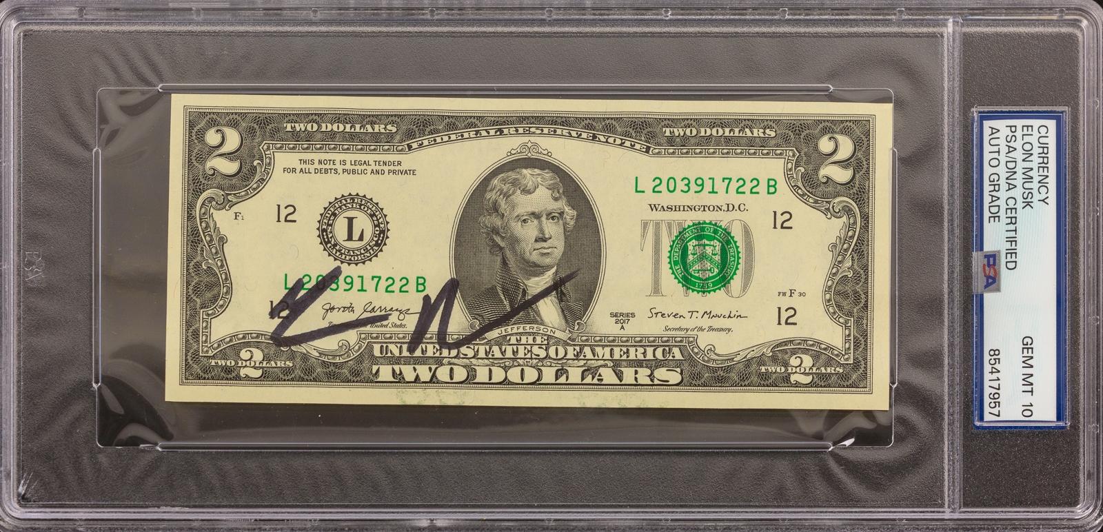 Elon Musk Signed $2 Bill (PSA Auto Grade 10)