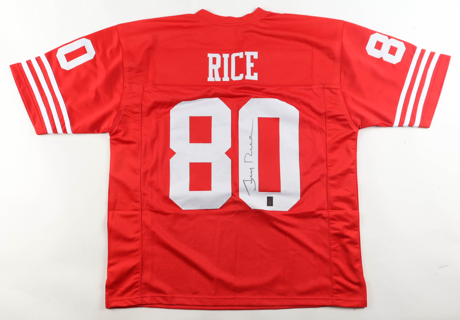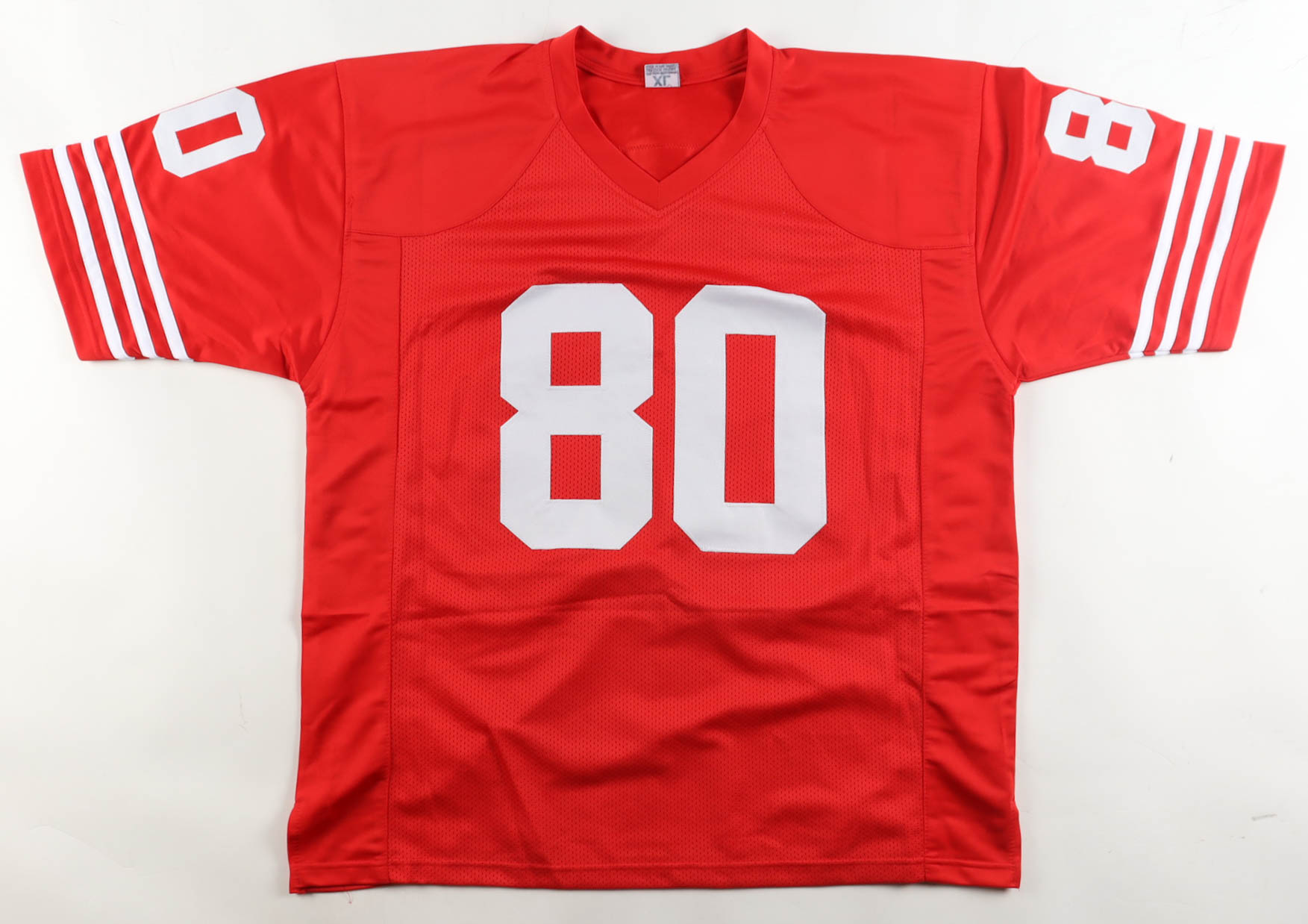 Custom jersey with everything sewn on, size XL. Hand-signed by Jerry Rice (HOF).