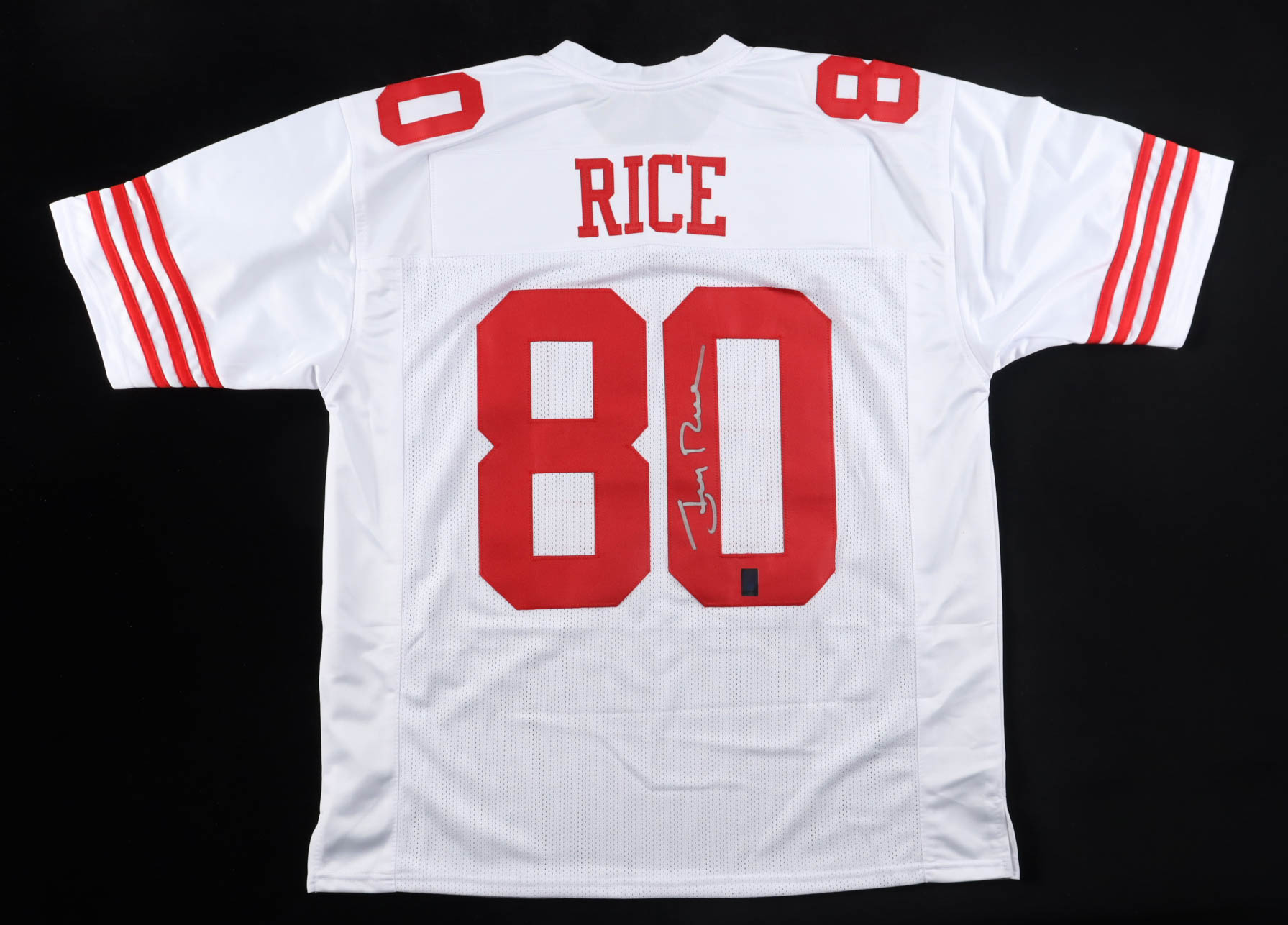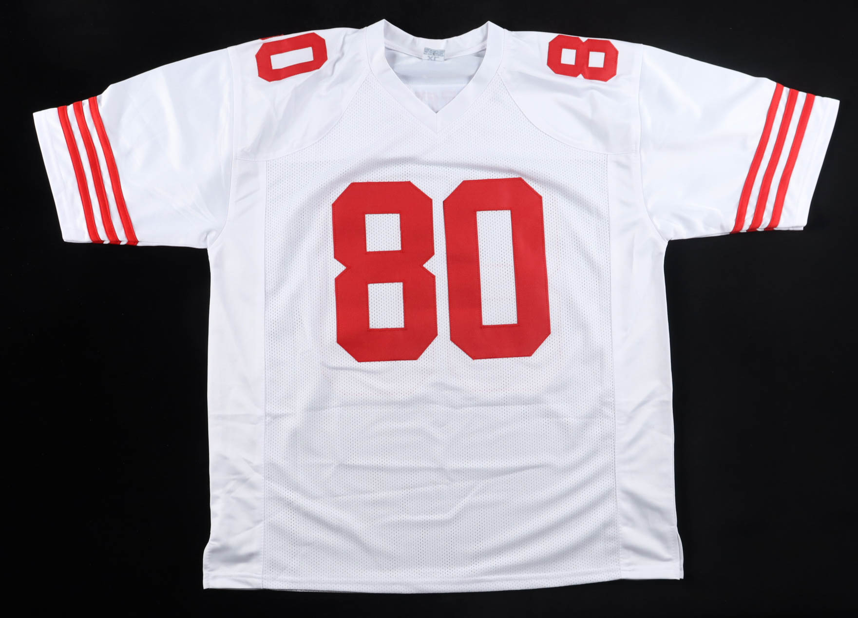 Custom jersey with everything sewn on, size XL. Hand-signed by Jerry Rice (HOF).