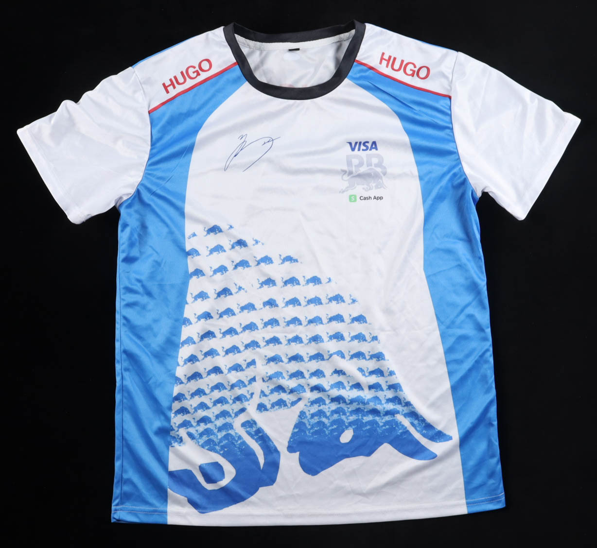 Custom shirt with everything printed on, size XL. Hand-signed by Yuki Tsunoda