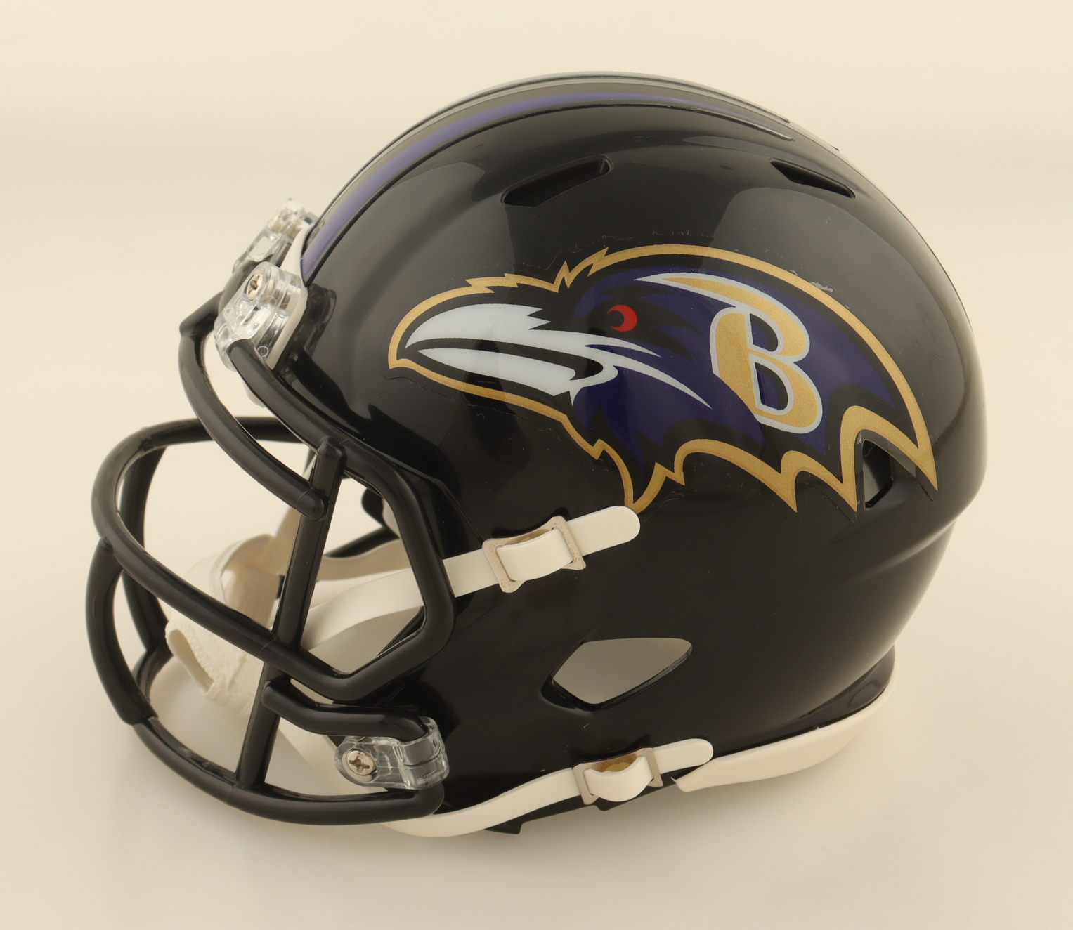 Riddell Baltimore Ravens Speed mini helmet. Hand-signed by Lamar Jackson.