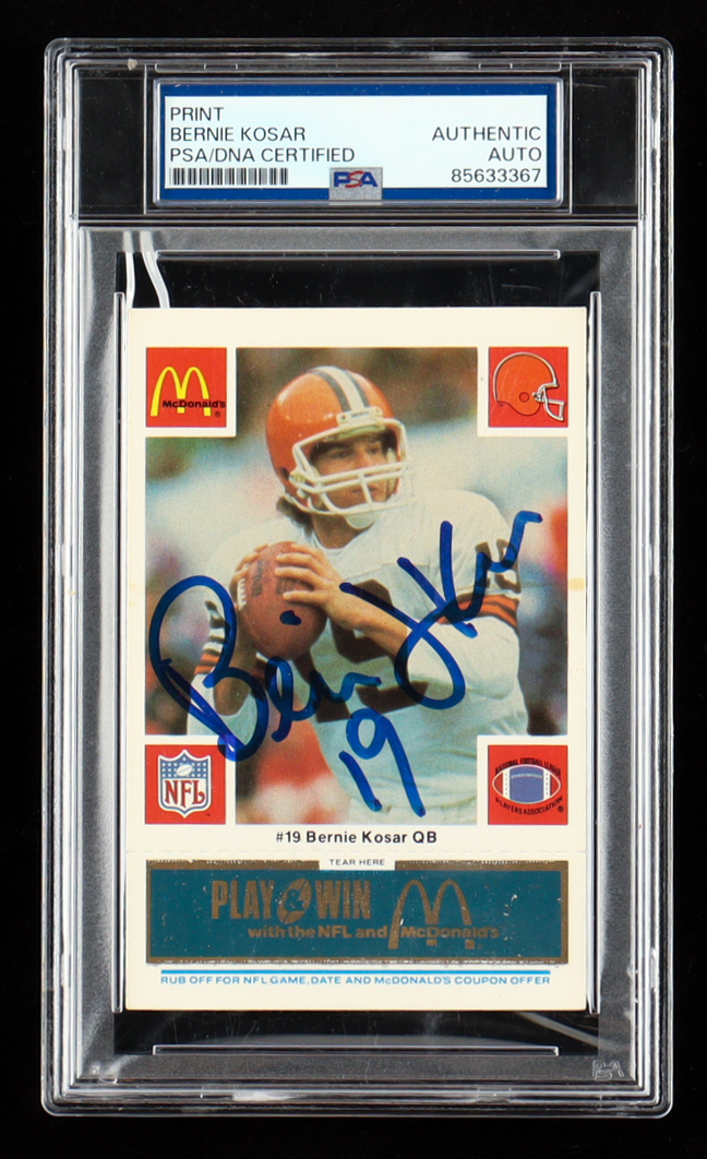Bernie Kosar Signed 1986 McDonald's Browns #19 Blue Tab RC (PSA)
