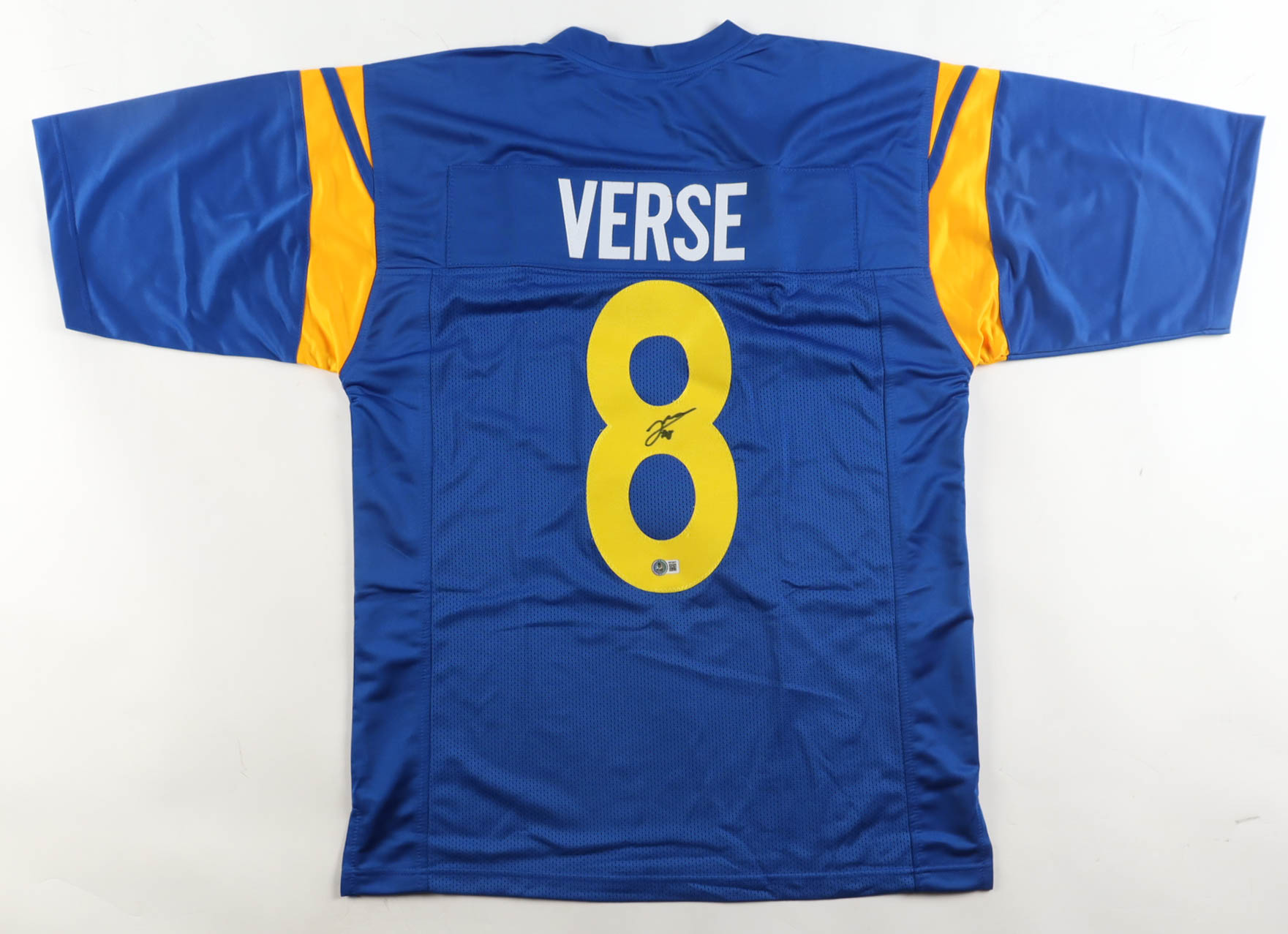 Custom jersey with everything sewn on, size XL. Hand-signed by Jared Verse (Los Angeles Rams).