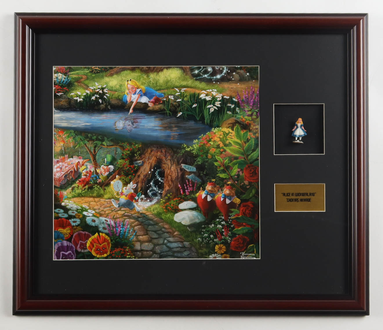 Thomas Kinkade "Alice in Wonderland" Custom Framed Print Display with 1960 Vintage Disney Figurine