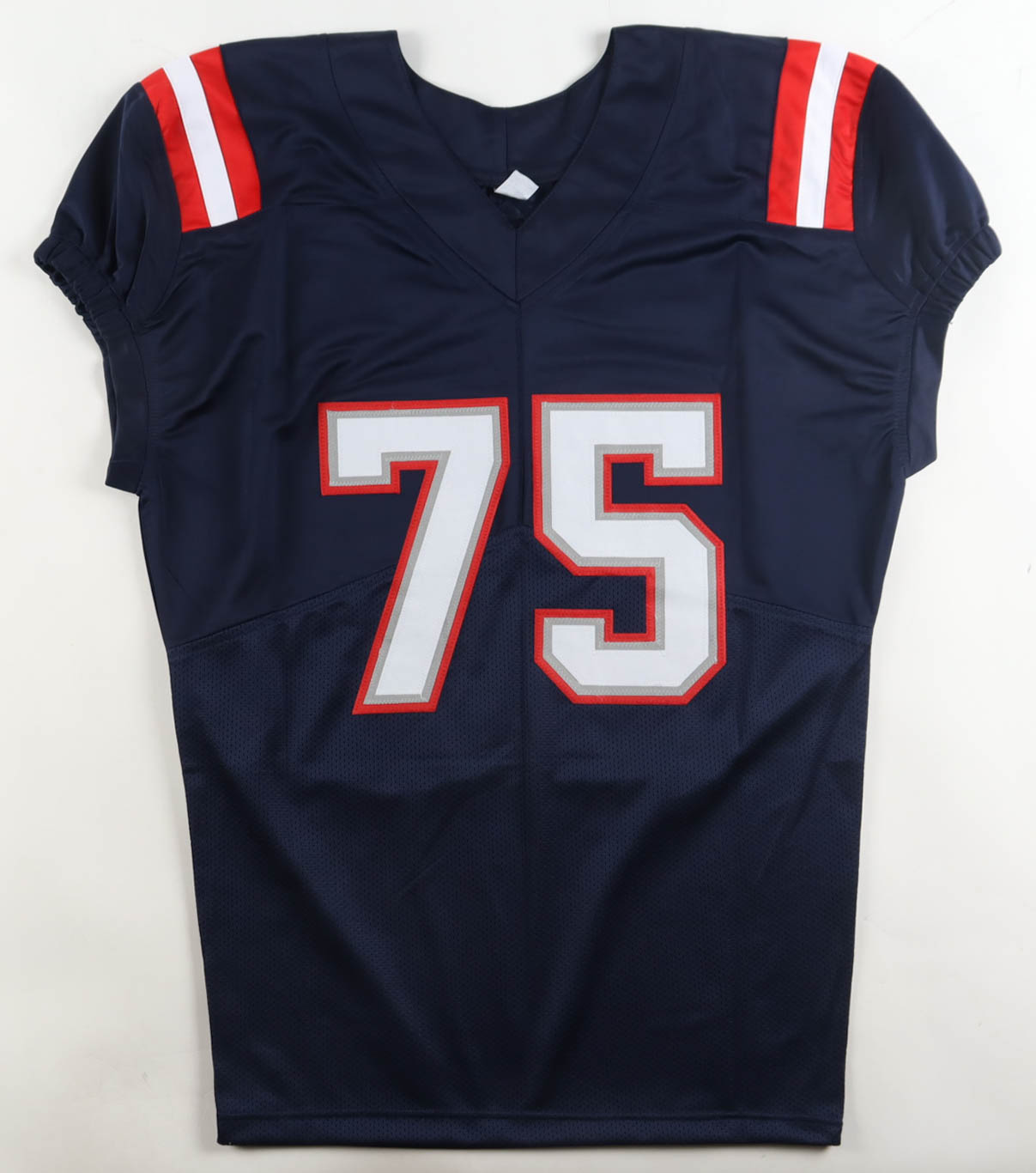 Custom jersey with everything sewn on, size XL. Hand-signed by Vince Wilfork.