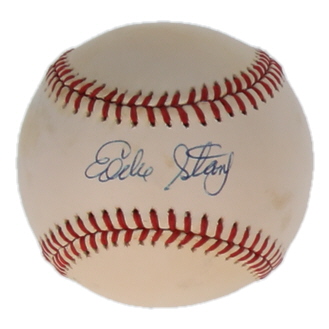 Rawlings Official National League Baseball. Hand-signed by Eddie Stanky (D. 1999, St. Louis Cardinals). Please note, the baseball is naturally toning and stained.