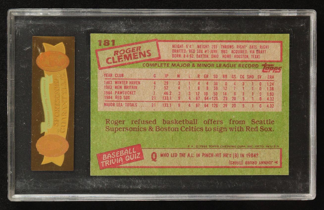 Roger Clemens 1985 Topps #181 RC (SGC 8)