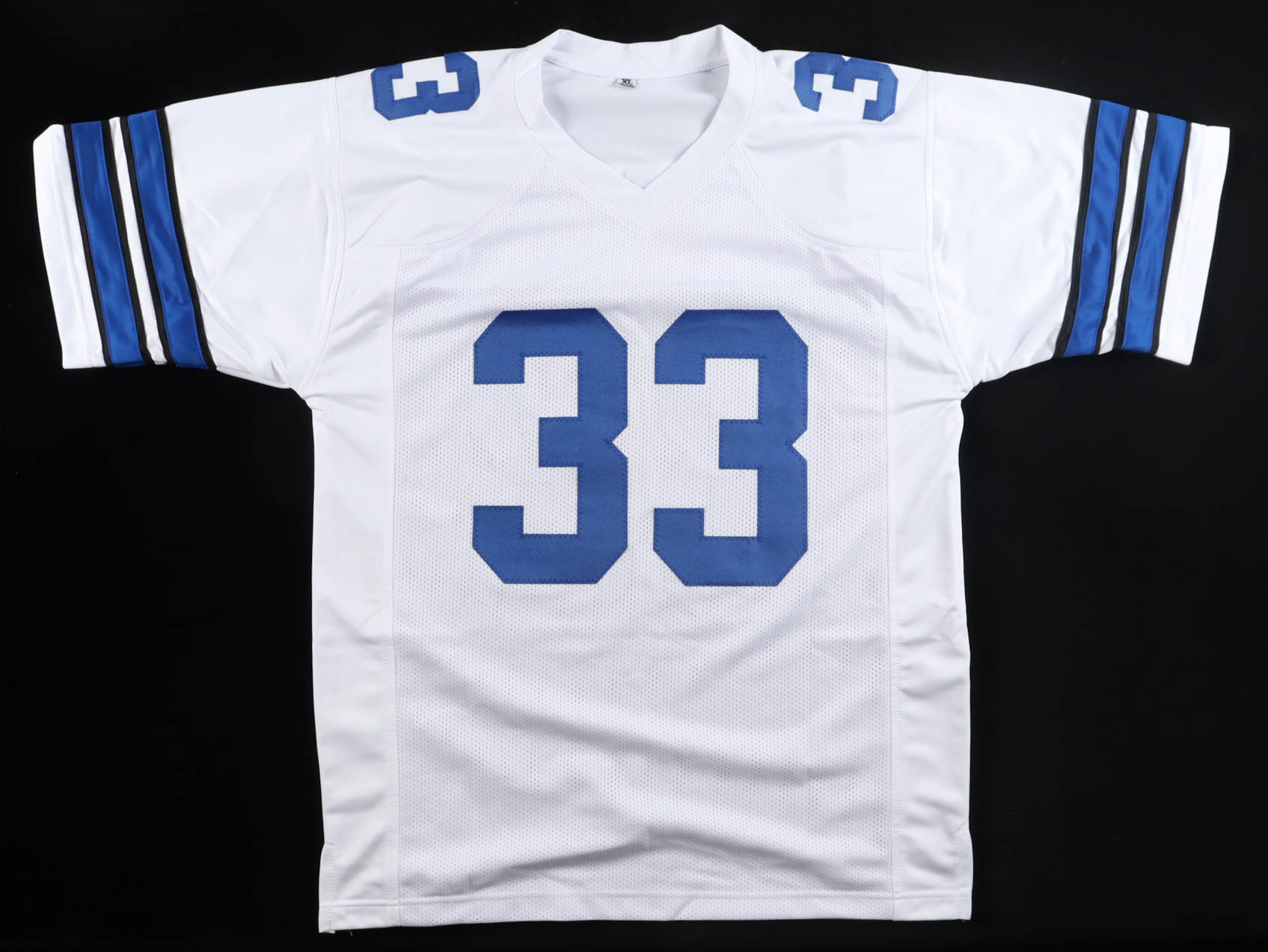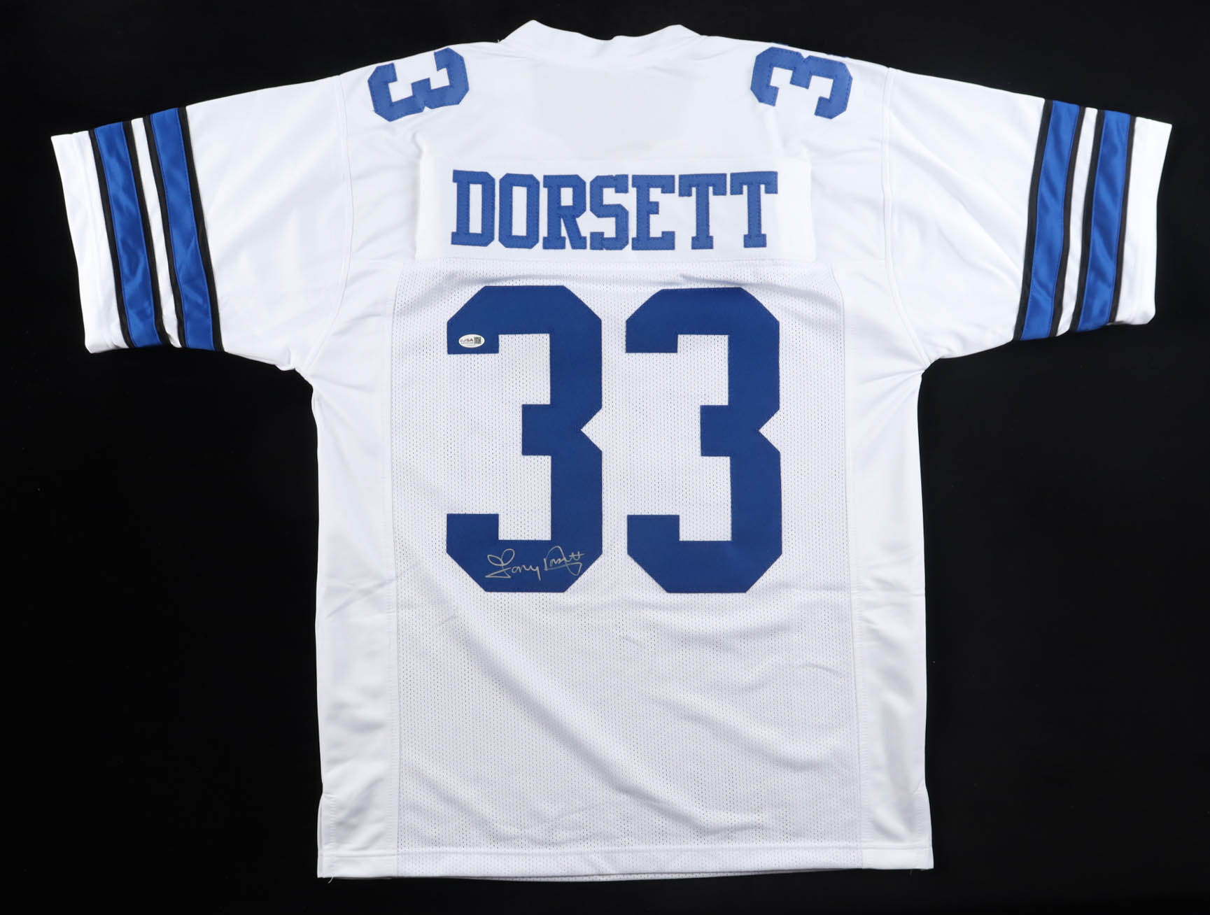 Custom jersey with everything sewn on, size XL. Hand-signed by Tony Dorsett (HOF).