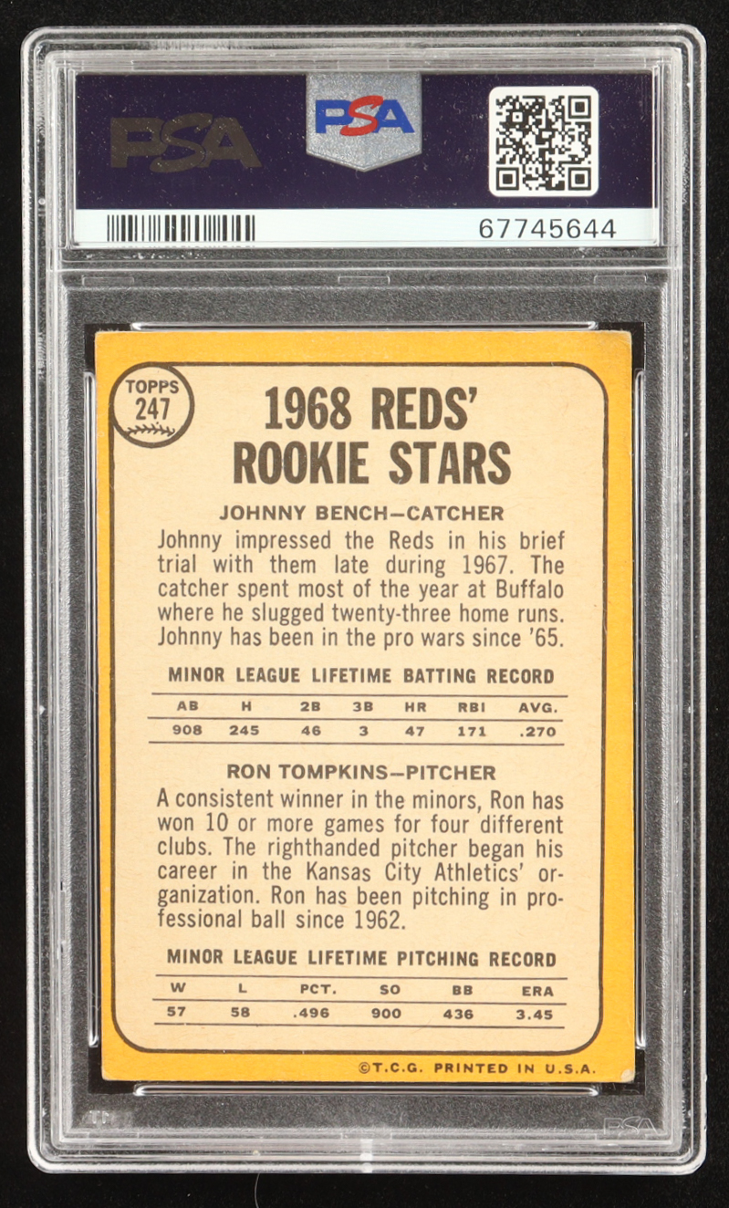 Johnny Bench / Ron Tompkins 1968 Topps #247A Rookie Stars COR RC (PSA 4) (MC)