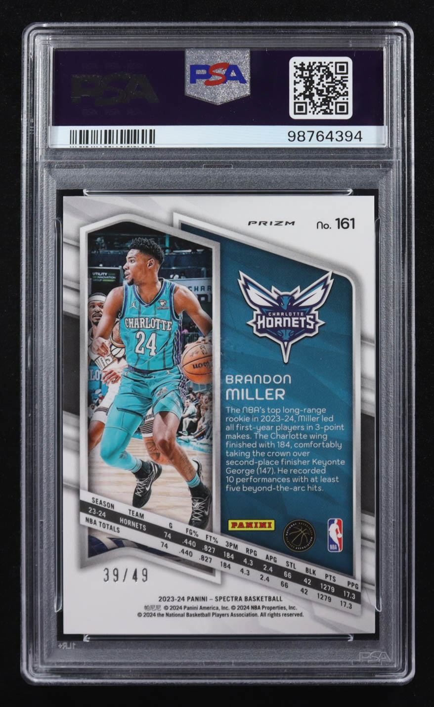 Brandon Miller 2023 Panini Spectra Astral #161 RC #39/49 (PSA 10)