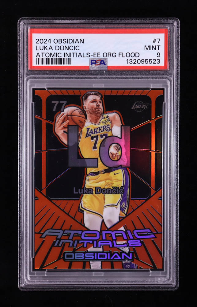 Luka Doncic 2024-25 Panini Obsidian Atomic Initials Electric Etch Orange Flood #7 #42/99 (PSA 9)