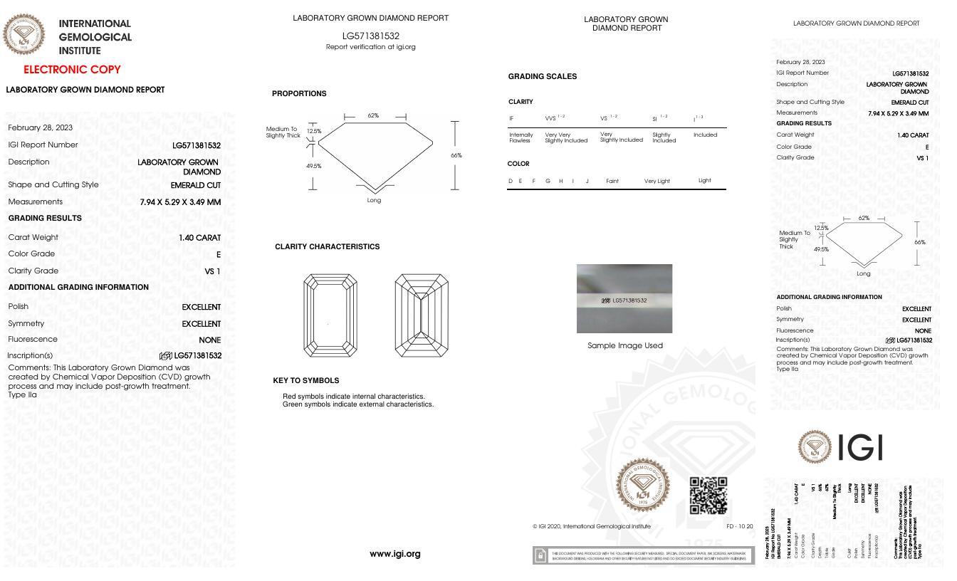 This piece includes paperwork from the International Gemological Institute (IGI).