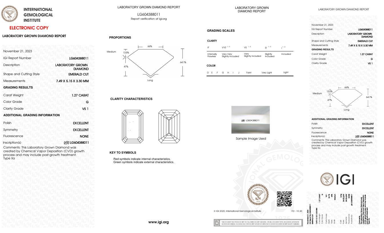 This piece includes paperwork from the International Gemological Institute (IGI).