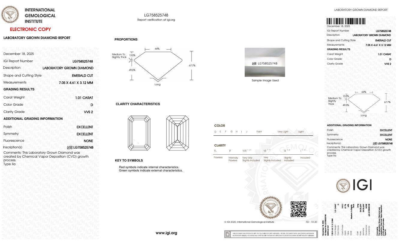 1.01 Carats Lab Grown Diamond Loose D, VVS2 | (IGI Cert)