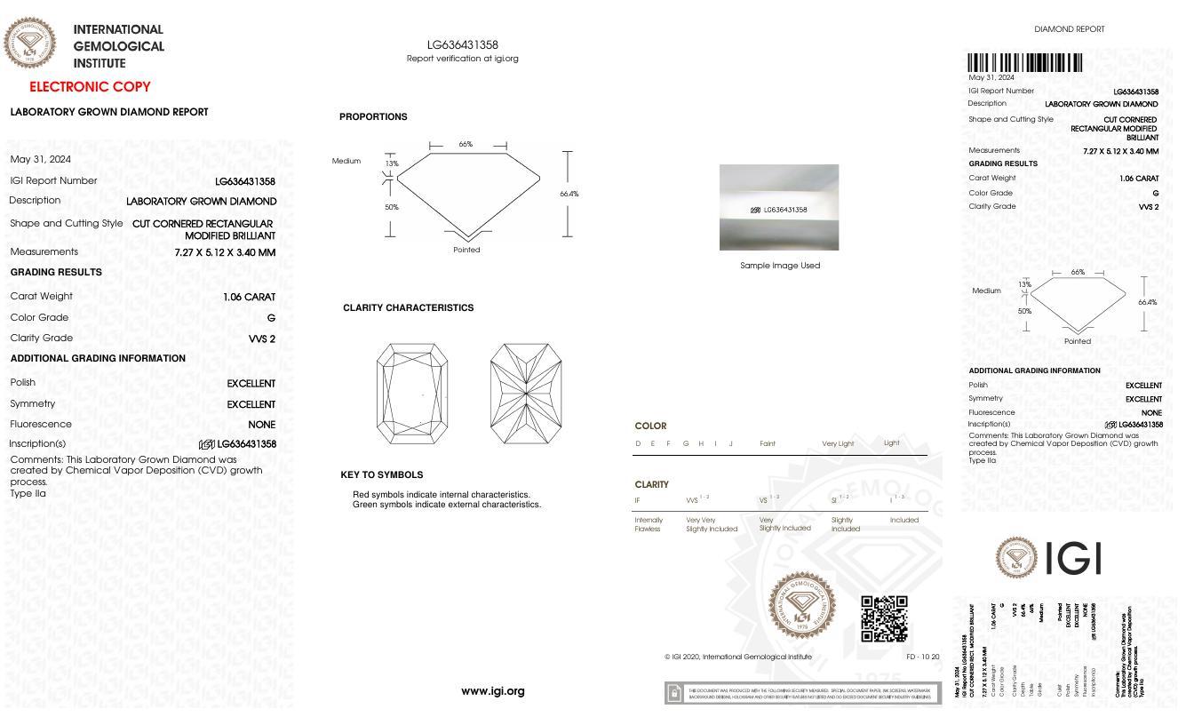 This piece includes paperwork from the International Gemological Institute (IGI).